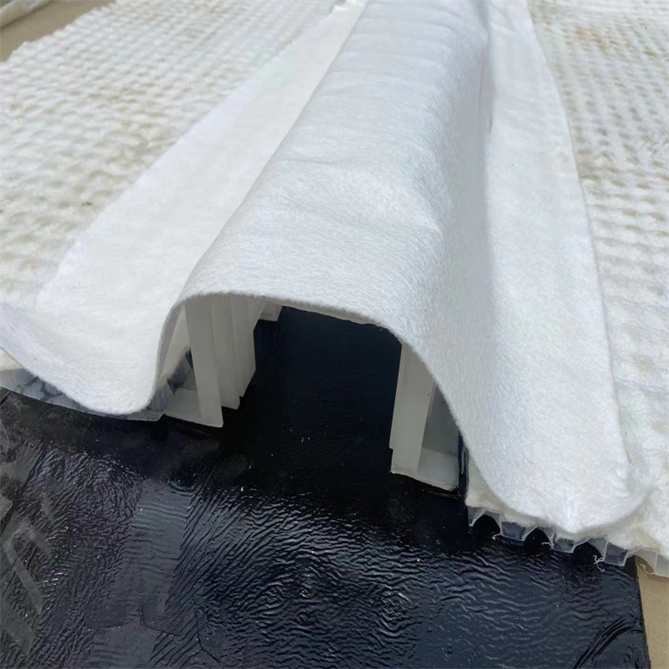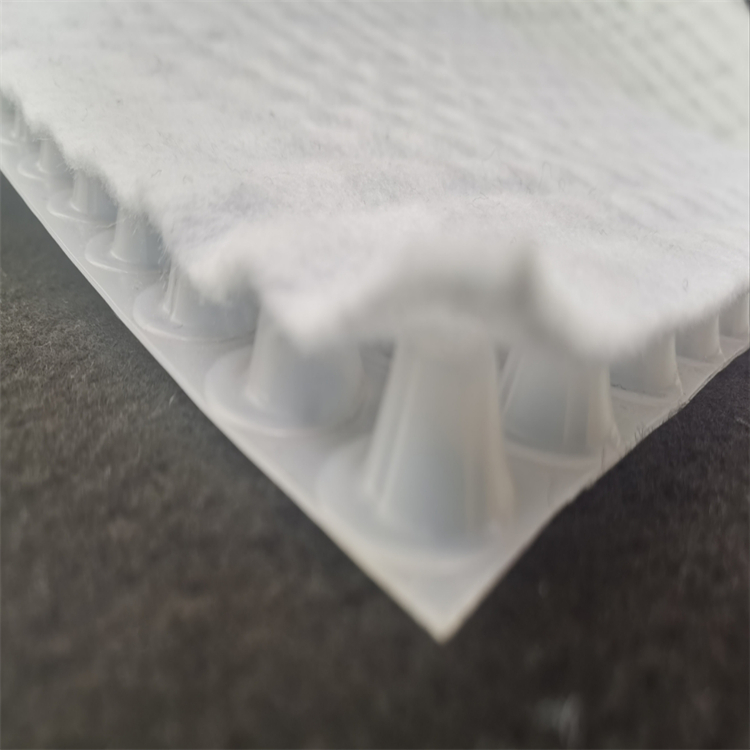 復合防護排水異型片由高密度聚乙烯、樹脂通過吸塑、熱熔、復合一次成型,具有良好的排水、透氣通道,排水效果好。